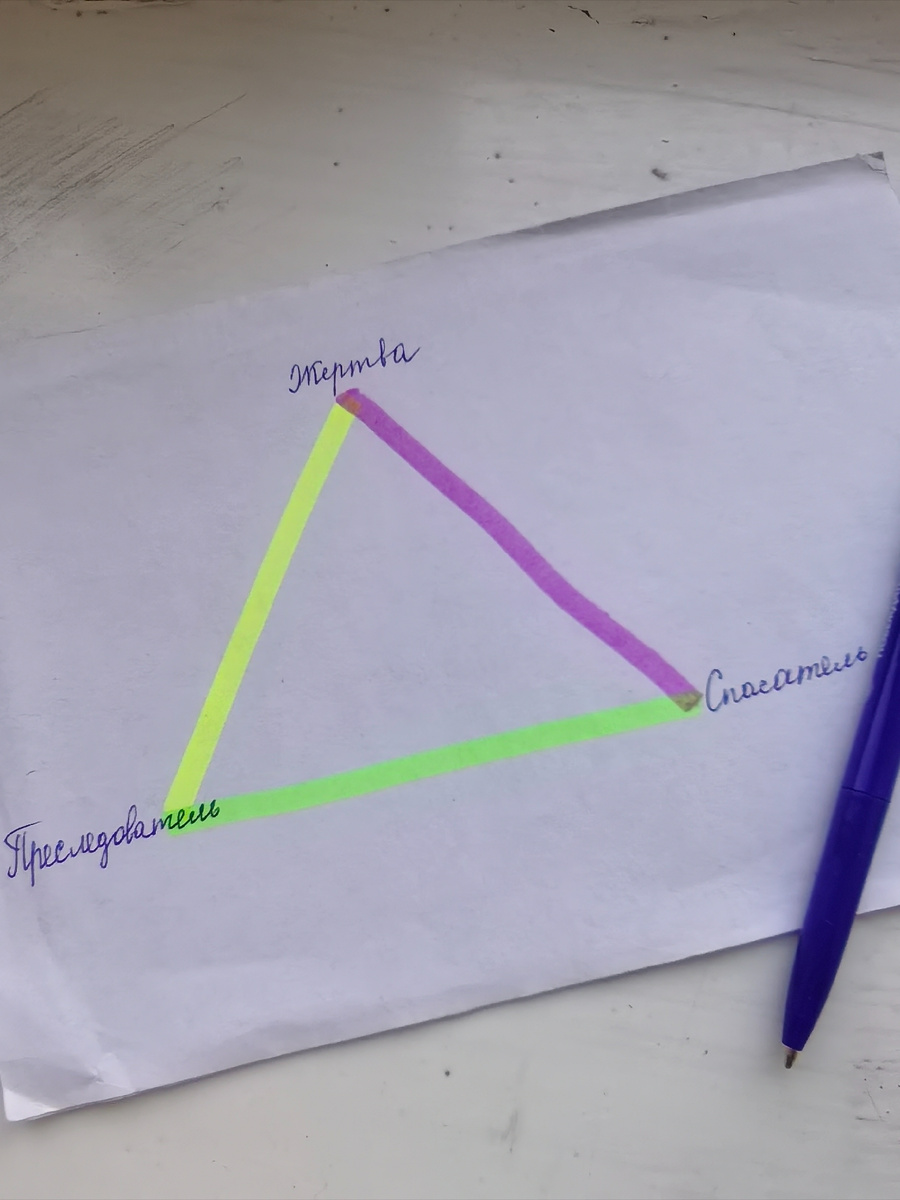 Много лет назад у меня были сложности, я решила обратиться к психологу. Павел Анатольевич настоящий профессионалсвоего дела. Многие проблемы мы разбирали с ним вместе, многое он мне смог объяснить. Он отличный гипнолог, помог разобраться в себе. Кроме того, он научил меня некоторым практикам и способам решения проблем. Я бы хотела поделиться с вами, кому-то эта информацияможет быть полезна. Итак, в определенный период был сложный этап в семье моих родителей. Было сложно принять сложившуюся ситуацию, мы с сестрой переживали и не знали как можем помочь или повлиять. С этим вопросом я пошла к Павлу Анатольевичу. Он меня выслушал, задал несколько вопросов и начал объяснять, что я никак на эту ситуацию повлиять не могу, а чтобы наглядно я это увидела, он показал мне одну схему, которая может помочь в любой ситуации. Он нарисовал мне на листке треугольник, подписал каждую из вершин и стал объяснять, как он работает. Называется эта схема Треугольник Карпмана. Возможно, вы уже знакомы с ним.