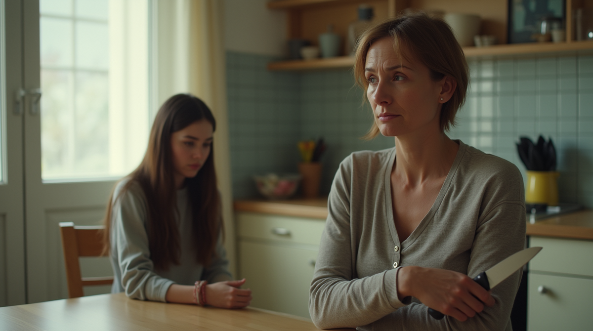 — Ты! Это ты ей нажаловалась! — мама стояла посреди коридора с кухонным ножом в руке. Не угрожала — просто держала, потому что резала что-то на ужин. Но выглядело жутко. — Думаешь, я не знаю, как ты на меня смотришь? Как будто я чудовище!