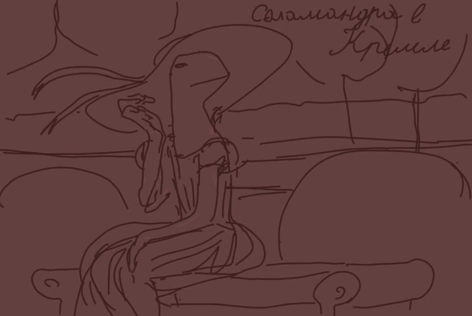 Здравствуй, друг! Вытащила планшет, залезла в Ps, радуюсь. Рисовать приятно... Неожиданно возник такой сюжет - Саламандра в Кремле. Неожиданно, потому что художественными образами в рисунках занималась пару лет назад. Я сменила работу на художника. Зарплата выросла в 2,5 раза. С моими навыками меня взяли в контор и я уже достаточно хорошо владею планшетом и некоторыми нужными программами. Нарисовала клип на песню, получилось интересно, атмосферно и главное здорово! *** Это было вступление. Всегда говорили - хочешь что-то сказать, говори уже тогда, когда всё случилось. Эту запись вероятно увидят через год, а я уже сделала то о чем написала выше. Итог: выше нос, иди за целью и стремись - реальность следует за твоим вниманием. Хорошего настроения на весь год!