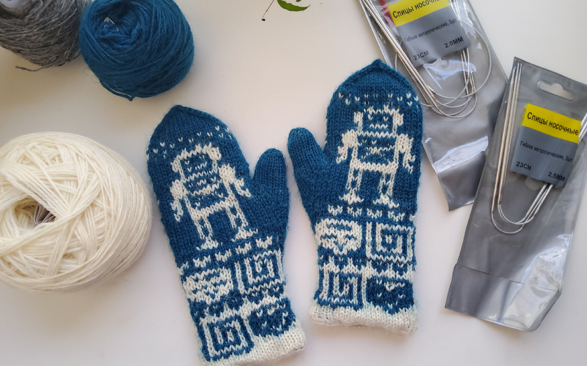 Друзья, на днях я связала варежки своему сыночку. Делюсь с вами результатом и хотела подробнее рассказать как и что я делала. Если вы захотите повторить, пожалуйста ориентируйтесь на свою плотность вязания, возможно вам понадобится большее количество петель или наоборот меньшее. Расход пряжи тоже условный, приблизительный, возможно вам понадобится чуть больше или меньше. Схему тоже можете менять как угодно. Делюсь с вами и надеюсь что вам это поможет и вдохновит на новые проекты. Удачи! Варежки получились на детскую ручку мальчику 3 года. Ширина манжеты 14 см, длина манжеты 5 см, от манжеты до пальчиков 12 см, длина пальчика 5 см. Я использовала следующие материалы: пряжу yarnart Forza Solid цвета 4602 и 4625, пух норки цвет 803 + доп нить, спицы 2мм и 2,5мм, маркер чтобы отметить пальчик(не обязательно). На создание таких варежек у меня ушло 15 грамм основного синего цвета,12 грамм дополнительного белого цвета и 11 грамм пуха норки на внутренний слой. Верхний и внутренний слой вя