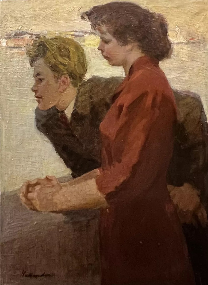 Михаил Давидович Натаревич (1907, Витебск, Российская империя - 1979, Ленинград, СССР), российский советский художник, живописец, член Ленинградской организации Союза художников РСФСР. "Юность", 1957 Холст / масло, 40 х 50
