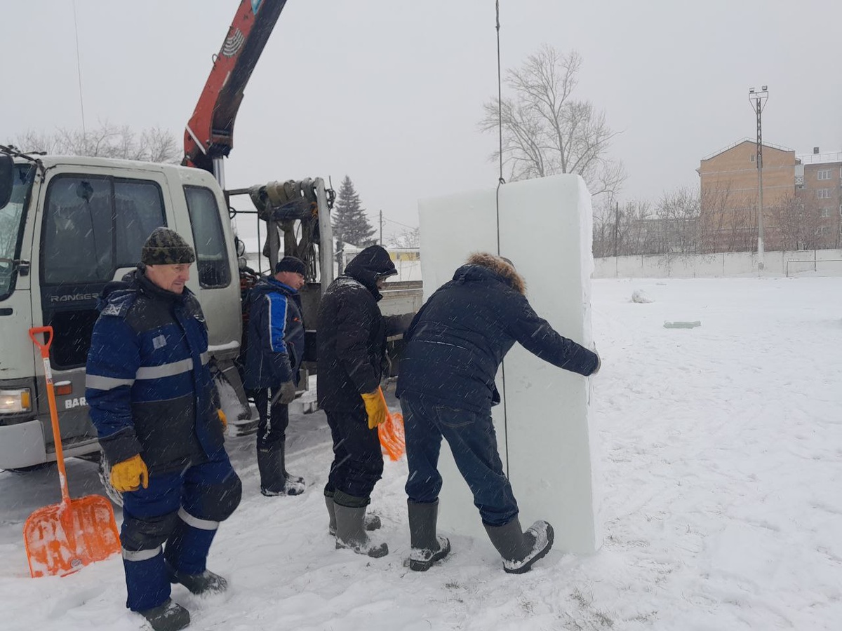 Верная примета приближающегося Нового года - в Уяре началось возведение ледяной горки