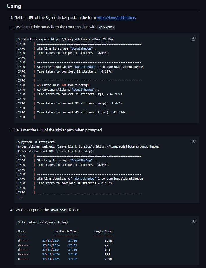 🎭 TStickers — это Python-утилита, которая позволяет скачивать наборы стикеров из Telegram и конвертировать их в разные форматы