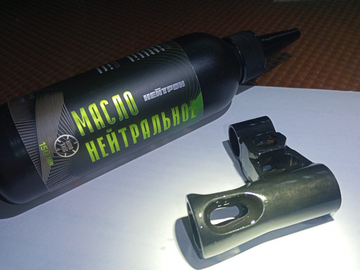 Нейтральное масло. Казалось бы, что может быть проще и понятнее, чем одно из самых популярных средств для ухода за оружием? Да и оно же обычно самое недорогое на полках ормагов, причём на любой вкус и цвет. Стоимость некоторых образцов немногим более ста рублей, есть и чуть подороже и сильно дорого, особенно за импорт. С другой стороны, как многие думают, это же просто нейтральное масло, так если нет разницы, то зачем платить больше? Не всё так однозначно. Нейтральные масла предназначены для проведения смазки металлических деталей и поверхностей для временной защиты от окисления, а также для снижения коэффициента трения за счёт устойчивой масляной плёнки, при этом они не должны выступать в реакции с металлами и покрытиями ввиду отсутствия в составе кислот или щелочей. Так же такие масла способны нейтрализовать агрессивную среду продуктов сгорания пороха, хотя откровенно говоря, не всегда окончательно. В случае отсутствия других видов оружейной химии возможно применение нейтральных мас