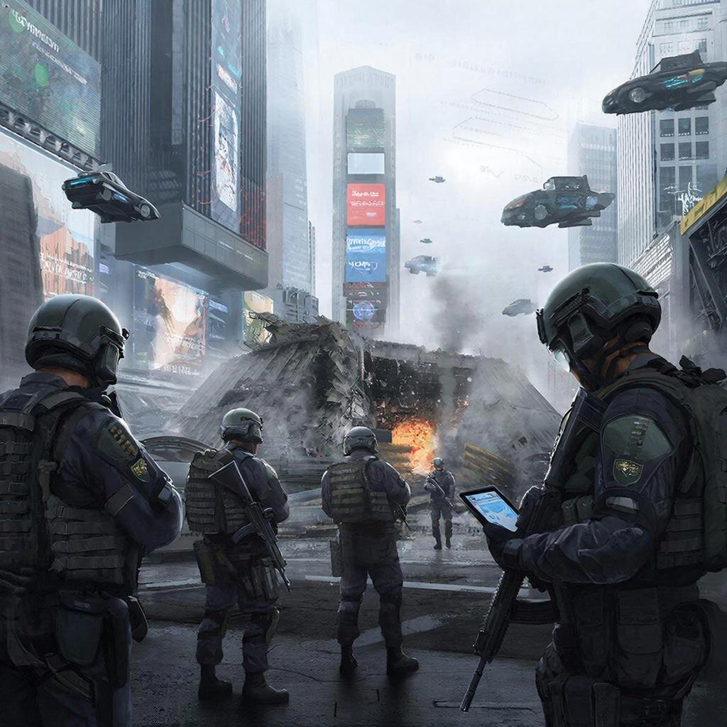 Группа вновь погрузилась в сферу, чувствуя себя уверенно благодаря предыдущему опыту. После яркой вспышки света они очутились в футуристическом городе, наполненном голограммами, летающими автомобилями и гигантскими экранами, транслирующими рекламу и новости.