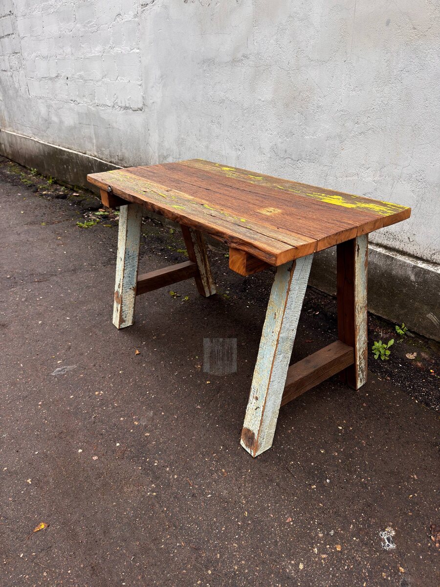 Стол-верстак из столетнего дуба, который когда-то был частью жилого дома. Старый дуб, следы жёлтой краски, глубокие потертости, трещины — всё настоящее. Ноги собраны из старого бруса с остатками голубой и белой краски. Ничего не красили заново, только масло-воск для защиты. Сто лет назад на этом полу стояли мешки с зерном. Сегодня — будет стоять ваш кофе по утрам или ноутбук вечером. Массивный, честный, вечный. Магазин старых досок Greyboard — чтобы старое дерево продолжало жить. #амбарнаядоска #стараядоска #магазинстарыхдосок #greyboard #столизстарогодуба #дубовыйстол #лофтстол #верстак #мебельизамбарнойдоски #reclaimedfurniture #barnwoodtable #rustictable #лофтмебель #деревянныйстол #интерьерлофт #старыйдуб #экомебель #мебельсисторией #vintagefurniture