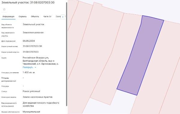 Название: Земельный участок с кадастровым номером 31:08:0207003:30, с видом разрешенного использования: блокированная жилая застройка