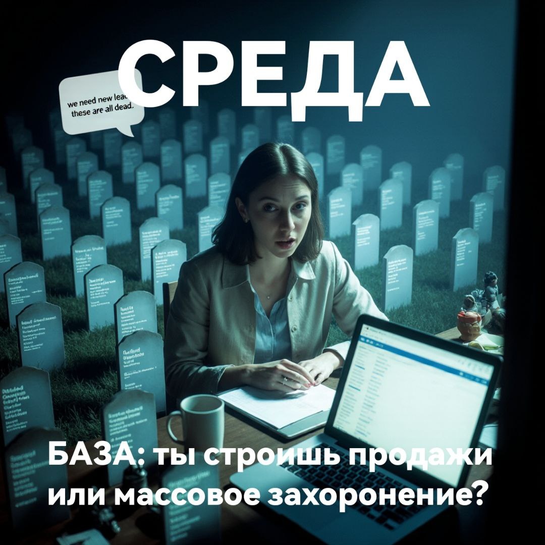 МОП хоронит старых — и ждёт новых. Вопрос: ты строишь продажи или массовое захоронение? День 3. Серия 1 из 3 Начало тут и тут Среда. 10:03. Ника на созвоне с собственником. Он говорит ровно тем тоном, который она знает наизусть: — «Продажи просели. Маркетинг говорит, что трафик дорогой. Значит, надо выжимать больше с того, что есть. Ник, смотри, чтобы база не тухла». Она кивает. Кивает так же, как кивала десятки раз до этого. Заканчивает созвон, закрывает Zoom и открывает CRM. Внутри — кладбище намерений: * статус «думает» трёхнедельной давности; * «созвон перенесён» месяц назад; * контакты, которые открывались по 5–7 раз и так и не получили нормальный следующий шаг; * старые клиенты, с которыми никто не выходил на связь после последней оплаты. В соседнем чате менеджер пишет: «Нам бы новых лидов. Тут уже всё мёртвое». Ника чувствует, как в животе расползается холодное недоумение: «Как “мёртвое”, если тут половина базы даже не доведена до внятного отказа?..» Она про