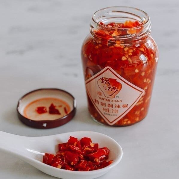 Хунаньский чили-соус Его подают к тем самым китайским пирожкам и пельмешам на завтраке, фантастическая штука. Если в Сычуане чили сушат и заваривают кипящим маслом, то в Хунане – смешивают с солью и рисовым вином и заквашивают. Эффект получается потрясающий – квашеный чили приобретает яркие фруктовые, тропические, ананасово-манговые тона, которые, не смотря на термоядерную остроту чили, не теряются на его фоне. Такой – чили, соль, вино – вариант самый базовый, иногда к соусу добавляют чеснок, имбирь, специи, но они там вообще не нужны, только собьют с этого фантастического вкуса ферментации. Все, кто едет в отпуск в Китай, должны привезти ведро. 🧂 @saltmagazine