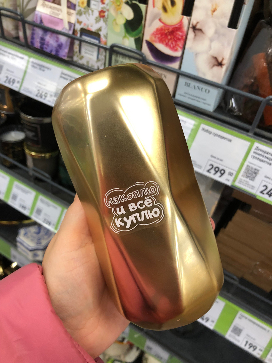 Всем огромный привет! Сегодня у меня для вас обзор новинок из магазина Фикс Прайс. Эта неделя обещает быть жаркой! Магазин поставляет новинки практически каждый день. Сегодня не исключение. В отделе декора появилась новая копилка интересной формы. Они с мотивирующими надписями. Покажу как она выглядит сверху. Копилка очень тяжелая. И представлена в ассортименте по цвету. Изготовитель Китай. Стоимость 199 рублей. Снова новинка! Стакан с трубочкой. Представляет собой высокий стакан с двойными стенками, между которых помещена мелкая мишура. Стакан плотно закрывается крышкой с трубочкой. В составе полистирол. Объем 470 мл. Цвет в ассортименте. Цена 149 рублей. В ассортименте есть подарочные наборы. Это кружка с подогревом. Она из керамики. Продается в подарочной упаковке. Цена 449 рублей. Настольная декорация с подсветкой. Работает от батареек. На выбор два дизайна. Изготовлены из фанеры. Размер 13,5х13,5 см. Производитель Россия. Цена 199 рублей. Подсвечник Лоренцо. Выполнен в виде