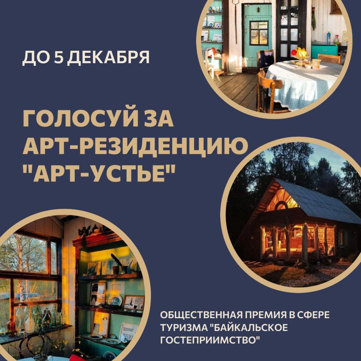 Друзья! Продолжается народное голосование на вручение общественной премии в сфере туризма «Байкальское гостеприимство». ⭐️Еще одна номинация, в которой участвует Кабанский район — «Креативная звезда туризма». В этой номинации наш район представляет яркий туристический проект художника Ивана Кравченко - арт‑резиденция «Устье», расположенная в деревне Кедровая‑Сибирская. Резиденция принимает художников со всего мира, а также предлагает гостям уютный отдых с видом на Байкал. Голосуйте за арт‑резиденцию «Арт‑Устье» под этим постом — поможем креативному проекту удержать лидирующие позиции. 📍Также напоминаем, что вы можете проголосовать и за других номинантов от Кабанского района. Поддержать участников просто: 1. Перейдите в официальный Telegram‑канал голосования: 👉 https://t.me/baikal_guest 2. Выберите наших представителей — музеи, отели, глемпинги, частные музеи и событийные мероприятия. 3. В каждой номинации можно отметить до трёх номинантов. Важно: выбор нужно сделать сразу в мом