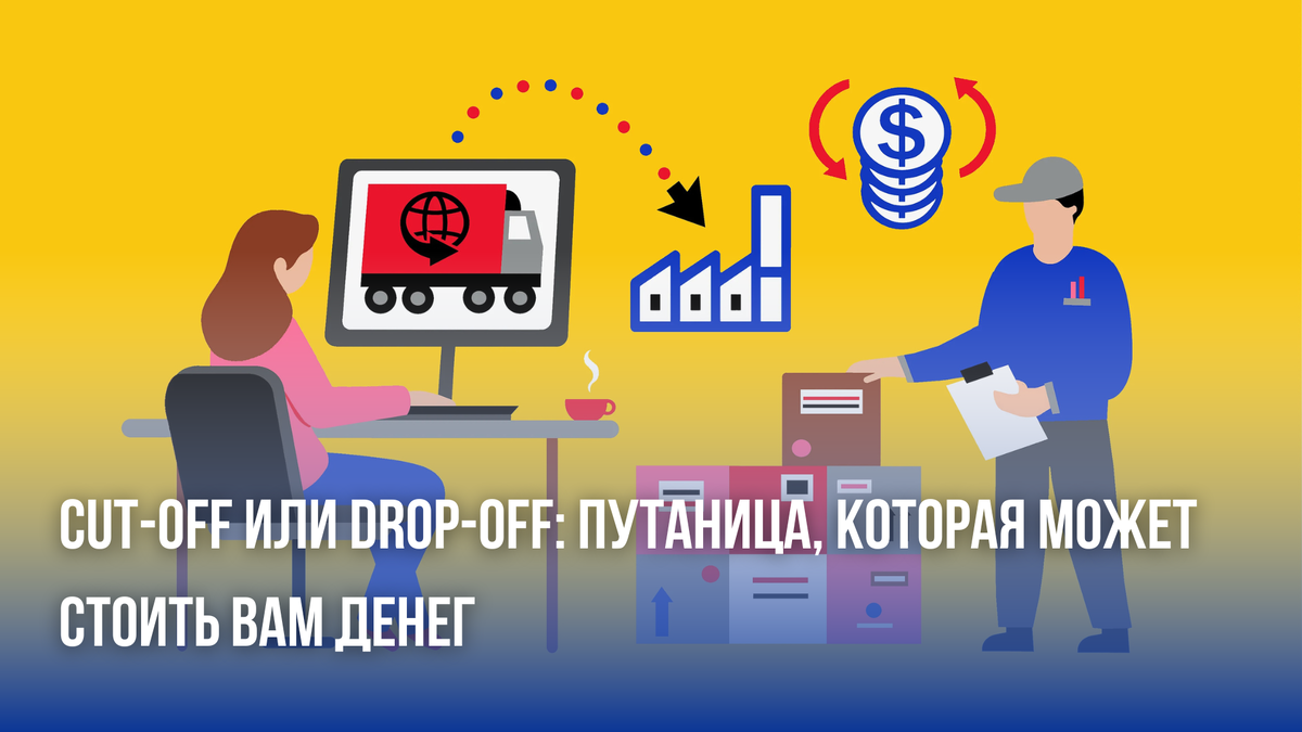 Это сдача пустого контейнера в сток/терминал после выгрузки груза. Суть процесса: Это физическое действие — вы привезли груз или посылку в определенное место и оставили его там. Простая аналогия: Представьте, что вы везете ребенка в школу. Вы подъезжаете к воротам, он выходит из машины — вы совершили drop-off. Дальше — забота учителей. Где встречается: Ключевая черта: Drop-off — это обычно конечная точка вашей ответственности за физическое перемещение груза. Cut-Off: не опоздай на последний поезд Перевод: «отсечка», «крайний срок». - про отсечку не надо Суть процесса: это не действие, а момент во времени. Жесткий дедлайн, после которого двери «закрываю