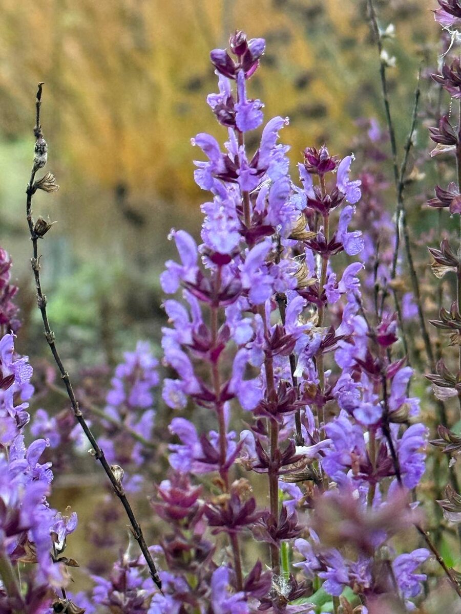 Шалфей дубравный в этом сезоне устроил нам настоящий сюрприз. Совершенно случайный эксперимент: до одного кустика мы добрались с обрезкой только в начале сентября. И, как ни странно, именно это запоздалое вмешательство дало мощный толчок к повторному цветению почти в конце осени. Теплый и влажный ноябрь только усилил эффект — сейчас этот «опоздавший» кустик цветет особенно обильно. Так что если у вас в саду есть монопосадки шалфея, можно взять на заметку: даже поздняя обрезка отцветших соцветий способна сместить вторую волну цветения и продлить декоративность клумбы практически до заморозков. Иногда удачные открытия случаются совсем случайно.