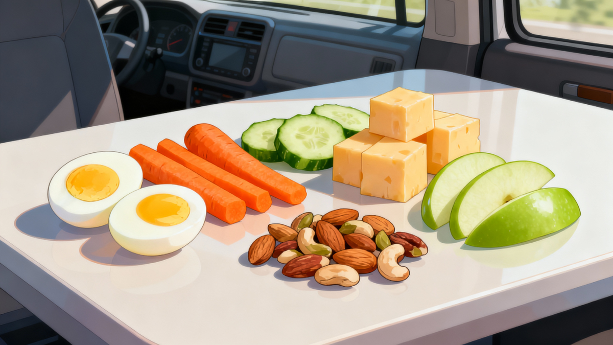 Упаковка — инвестируй в хорошие контейнеры. Пластиковые контейнеры с крышками спасают жизни. В них поместятся нарезанные овощи, яйца, кусочки сыра, орехи — всё, что нужно. Плюс — контейнер создаёт ощущение, что ты на цивилизованном пикнике, а не просто жуёшь что-то в машине.