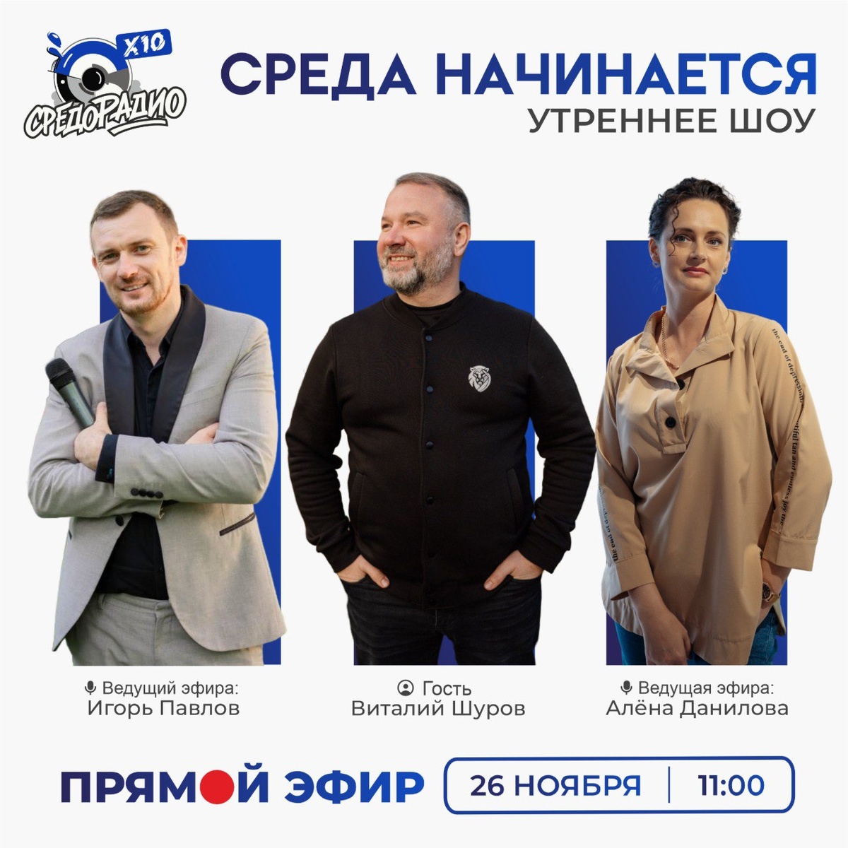 🌞 Доброе утро, друзья СРЕДЫ! Во вторник, 26 ноября, в 11:00 по МСК в утреннем шоу «СРЕДА НАЧИНАЕТСЯ» вас ждёт мощный, глубокий и вдохновляющий эфир с Игорем Павловым и Алёной Даниловой! 🎙🔥 И наш гость — человек, который умеет держать баланс между скоростью, смыслом и созиданием — Виталий Шуров! ✨ Кандидат юридических наук. ✨ Предприниматель с 1999 года. ✨ Основатель компании «Окна Компас». ✨ Лидер Эквиум Нижний Новгород и один из создателей Дома Силы сообществ. ✨ Председатель Национального оконного союза. ✨ Отец четверых детей и человек, чьи путешествия — всегда со смыслом. Виталий — тот самый пример, когда сила характера соединяется с силой сообщества. Мотоциклы, книги, устойчивые решения, Эквиум, развитие людей вокруг и… умение совмещать всё это в одном потоке! 🚀 Эфир: https://myradio24.com/5559 Приложение MyRadio24: https://dzen.ru/media/sredoradio/-68945075272f5b1d26ed07e3 Telegram: https://dzen.ru/id/68347b0544414e3a879796a0 ВК: https://vk.com/sredoradio Будь в СРЕДЕ. Буд
