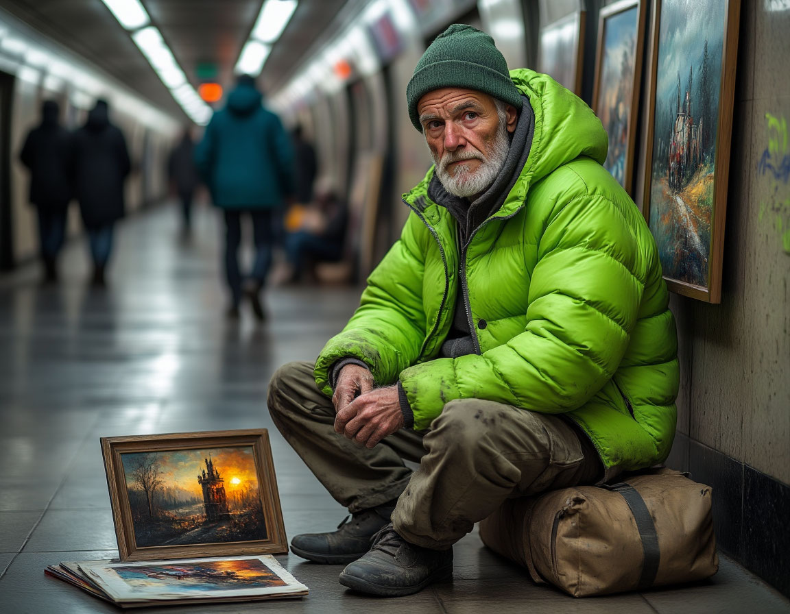 — Что вы можете понимать в искусстве? — бормотал бомж, уже больше сам с собой. — Вы думаете, искусство — это гламурные галереи с коньяком и устрицами? Нет! Искусство рождается здесь! В грязи, в боли, в одиночестве! Оно кричит! А вы… вы все глухие.