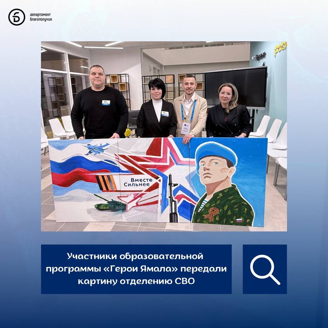 В Новом Уренгое — искусство во имя единства! В Арктическом лицее состоялась трогательная церемония передачи картины «Вместе — мы сила», созданной участниками программы «Герои Ямала» в течение двухнедельного обучения. Этот бесценный подарок с честью приняли специалисты отделения социального сопровождения участников СВО и членов их семей. 📸 Департамент благополучия 🔵Проголосовать за канал ❤️ Импульс Севера | Подписаться в MAX