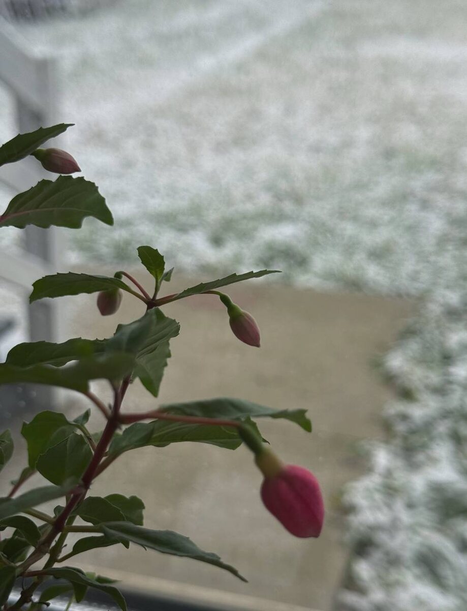 Доброе утро ❄️ За окном снег, а на окне цветочек… Надеюсь, будет радовать меня зимой. Как у ваша погода, наступила уже зима? У нас все тает… #осень #ноябрь #снег