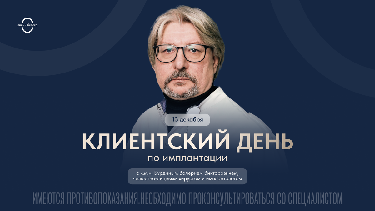 Имплантация зубов — это не только медицинская процедура, но и важный шаг к здоровой и красивой улыбке. Для многих пациентов она остаётся загадкой: какие методы используют хирурги, насколько безопасна операция и что ожидать после установки имплантатов? Чтобы развеять сомнения и получить достоверную информацию, наша клиника приглашает на клиентский день по имплантации, который проведёт к.м.н. Бурдин Валерий Викторович, челюстно-лицевой хирург и имплантолог. 📅 Дата и время: 13 декабря, 15:00