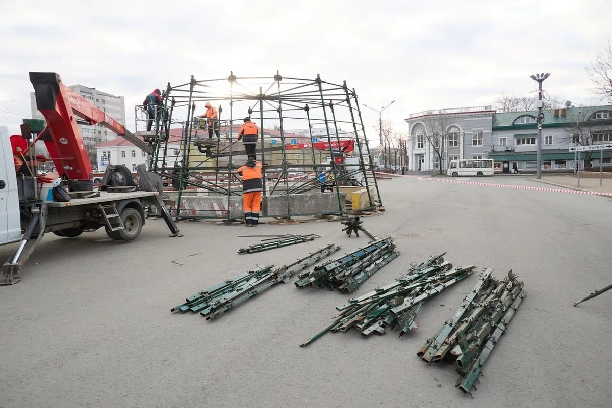 В Южно-Сахалинске устанавливают новогоднюю ель 🎄