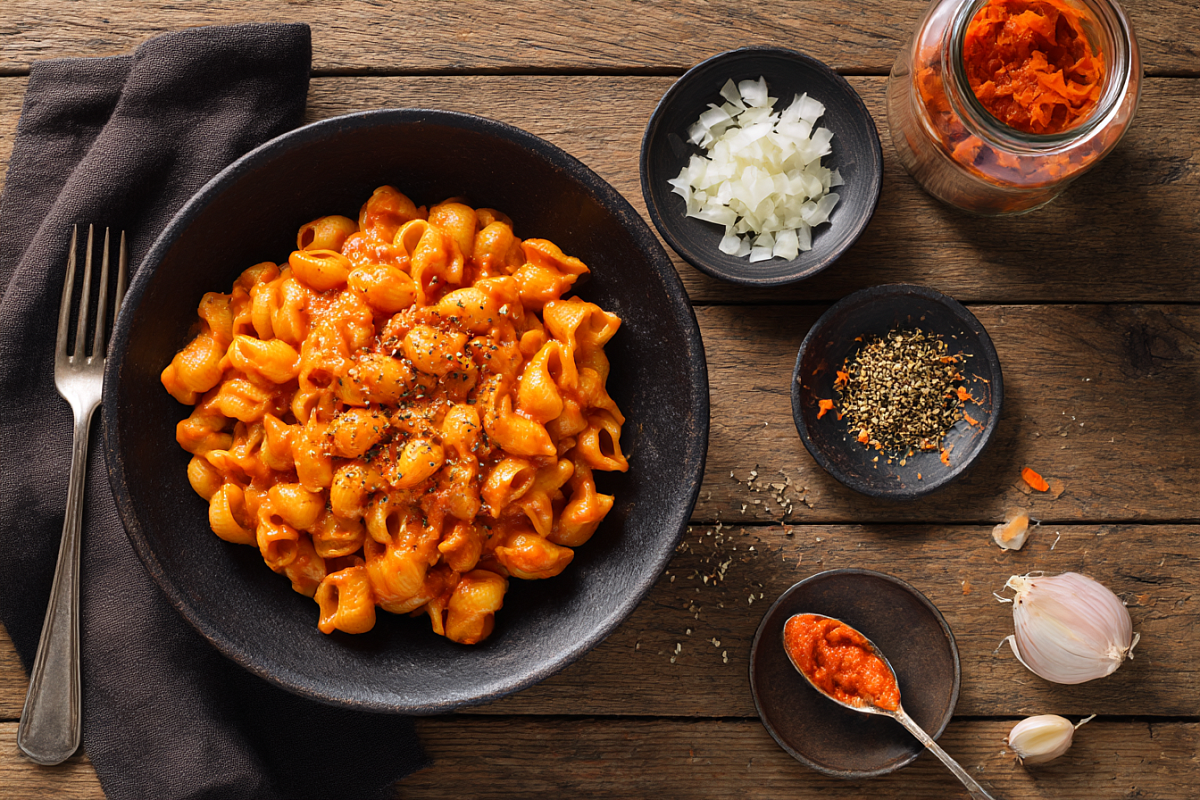 Бывает, варишь на обед макароны или картошку и понимаешь, что к ним “чего-то не хватает”. Не хочется каждый раз доставать котлеты, сосиски или долго возиться с мясом, а просто сварить гарнир и быстро подать к столу не получается — слишком уж сухо и скучно. Вот здесь и выручает такая подливка. Она делается буквально на ходу из самых простых овощей, а в тарелке получается уже не пустые макароны, а полноценное, тёплое, очень душевное блюдо с ярким томатным вкусом. Особенно приятно, что всё тут по-домашнему: лук и морковь, немного хорошего растительного масла, томат и любимые травы. Никакой муки и крахмала, никаких готовых соусов из пакета. Захотелось по-простому и полезнее — достали баночку своих помидоров, сделали заправку, полили гарнир и можно спокойно обедать без лишних хлопот. Обжариваем овощи и специи Возьмите глубокую сковороду или сотейник и слегка смажьте дно растительным маслом. Много масла не нужно, его задача — помочь овощам раскрыть вкус. Мелко нарежьте лук, морковь натрите н