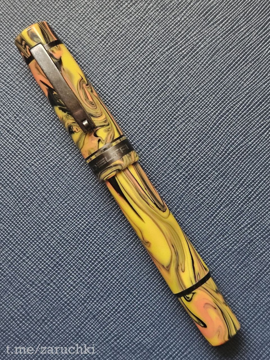Перьевая ручка Delta Gallery Techno&Web <M>. Мне кажется компания Delta понавыпускала невообразимое количество различных моделей и лимитированных изданий. И эта ручка привлекла меня своей расцветкой. Я брал б.у. ручку и видел расцветку, которая у меня будет. При покупке новых ручек со смешанными цветными материалами, может попасться неудачный замес. Выполнено все очень хорошо. И мне мне кажется техновеб подходит к названию ручки. Кольца и клип не классические с узорами, а ровные, строгие и цвет современных изделий из металла. Шарик на клипе вписывается в общий дизайн. Резьбы подогнаные везде хорошо. Очень плавно и приятно всё везде октручивается. Интересно было поиграть как на инерции барель может закрутится на секцию. Колпак - 1 оборот. Ничего не заедает. В руке сидит очень хорошо. Смола приятная на ощупь, с какой-то мягкостью и теплотой. Резьба на секции совсем не ощущащается. Перо Delta Fusion - это уникальная итальянская инновация. В стальное перо вплавлена накладка из золота (чита
