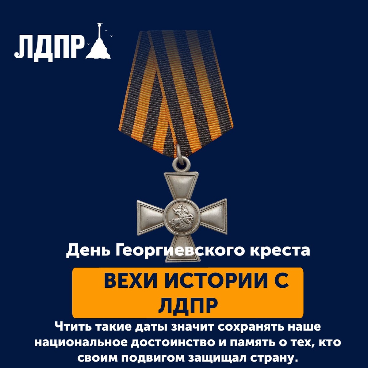 День Георгиевского креста — память о доблести и чести 🇷🇺 Сегодня страна вспоминает историю главной воинской награды, которая более двух веков символизирует личное мужество и верность долгу. В Севастопольском отделении ЛДПР уверены: такие даты нужно знать — они берегут нашу память и связь поколений. Орден Святого Георгия был учреждён Екатериной II в 1769 году 🛡️. В 1807 году появился и «солдатский Георгий» — награда за личную храбрость для нижних чинов. За всю историю империи высшую степень ордена вручали всего 25 раз — подвиг должен был быть по-настоящему исключительным. В России награду восстановили в 2000 году, и сегодня Георгиевским крестом отмечают героев, проявивших мужество при защите страны 🇷🇺. По всей стране проходят уроки мужества, встречи с ветеранами и памятные мероприятия. История этой награды — это истории людей, которые ставили долг выше собственной жизни. Севастопольское отделение ЛДПР считает важным хранить уважение к таким датам и к подвигам, которые укрепляю