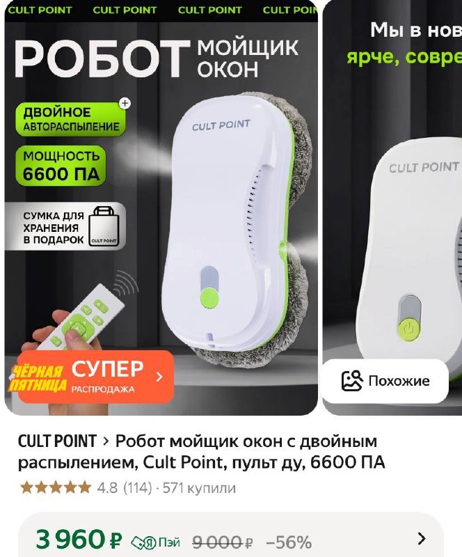 Робот мойщик окон с двойным распылением, Cult Point, пульт ду, 6600 ПА https://market.yandex.ru/cc/86qCmM Цена на 🛒: 3960 ₽ | 9000 ₽ рейтинг: 4.8 ⭐️ выгодная цена 💲 ✅ Подписаться 🔣 Бот с промокодами
