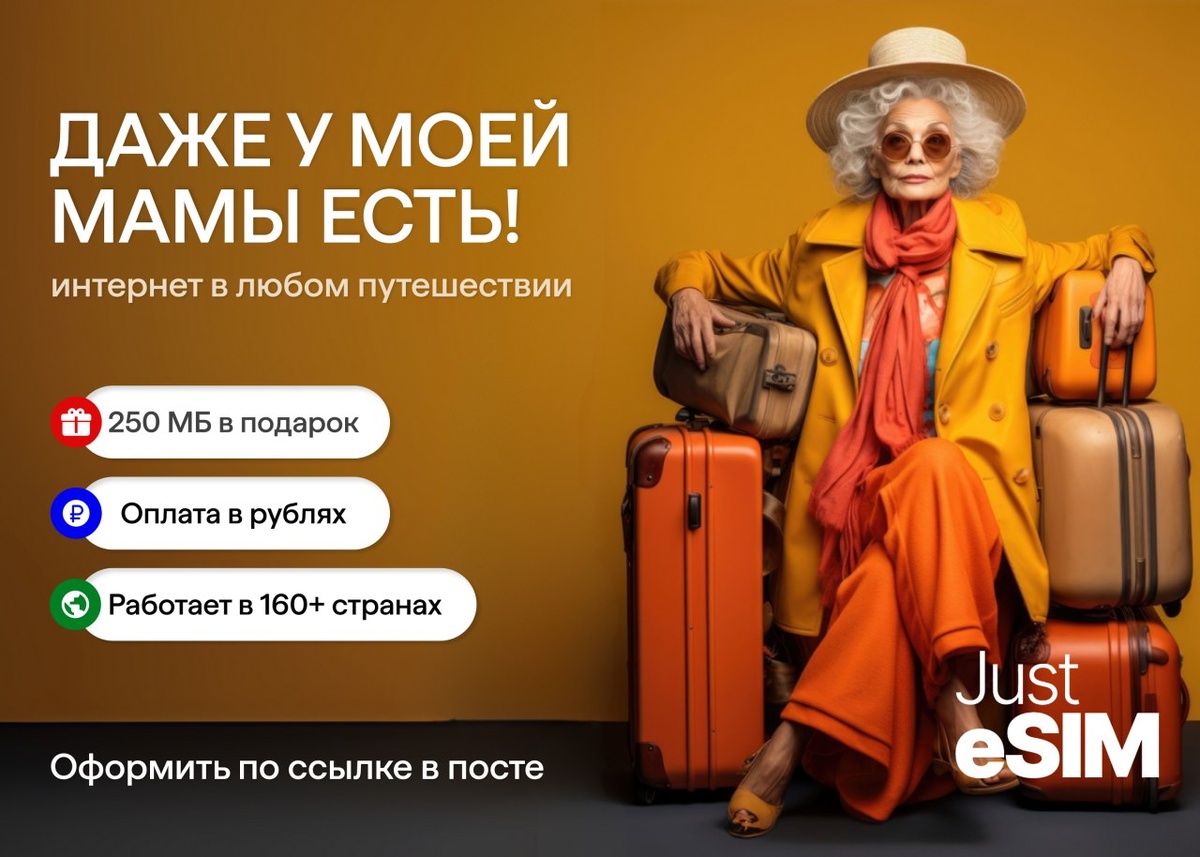 📲 Just eSIM — это цифровая SIM-карта, которую можно установить прямо на смартфон за 2 минуты. Она работает в 160+ странах, подключается к местным операторам и позволяет вам быть онлайн сразу по прилёте — без поиска SIM-карт и переплат за роуминг. 🎁 При первом подключении — 250 МБ интернета в подарок, чтобы вы могли сразу вызвать такси, построить маршрут и написать родным. Почему это удобно: – Подключается онлайн, без визитов в салоны связи – Прозрачные тарифы, без скрытых платежей и подписок – Поддержка на русском 24/7 — без ботов, отвечают за 2 минуты 👉 Перейти к установке Just eSIM - https://app.justesim.com/?promocode=STARTTIME Путешествуйте с комфортом — а связь мы уже подготовили! 🌍📶 Лучшие туры https://starttime.ru/search-tours #СтартТайм #ЛучшийТур
