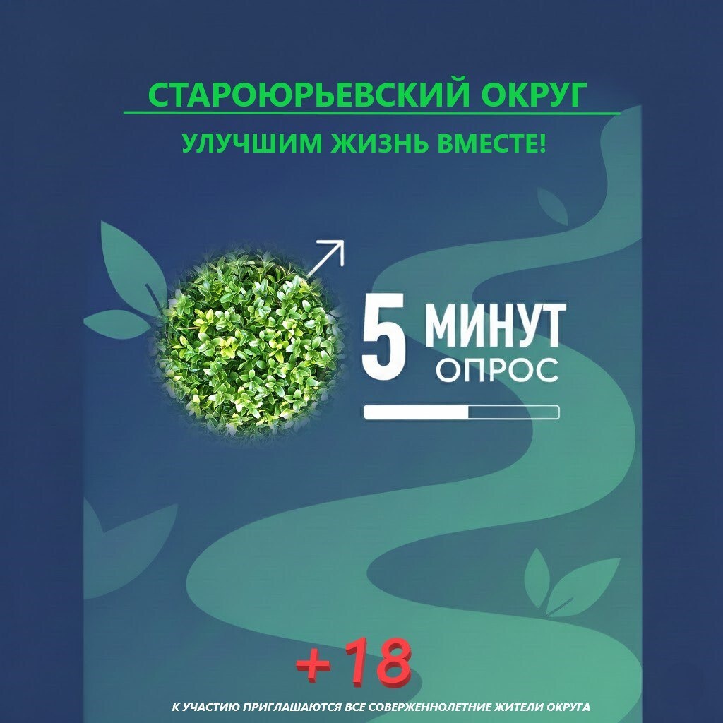 Помогите нам улучшить жизнь в Староюрьевском округе! Ваше мнение необходимо для оценки работы местной власти и качества услуг в сферах ЖКХ, дорог и транспорта. Пройдите быстрый (до 5 минут) и короткий опрос. Ваши ответы — это прямой путь к повышению качества услуг для всех жителей. К участию приглашаются все совершеннолетние жители округа. Ссылка на опрос: https://clck.ru/3PnMos