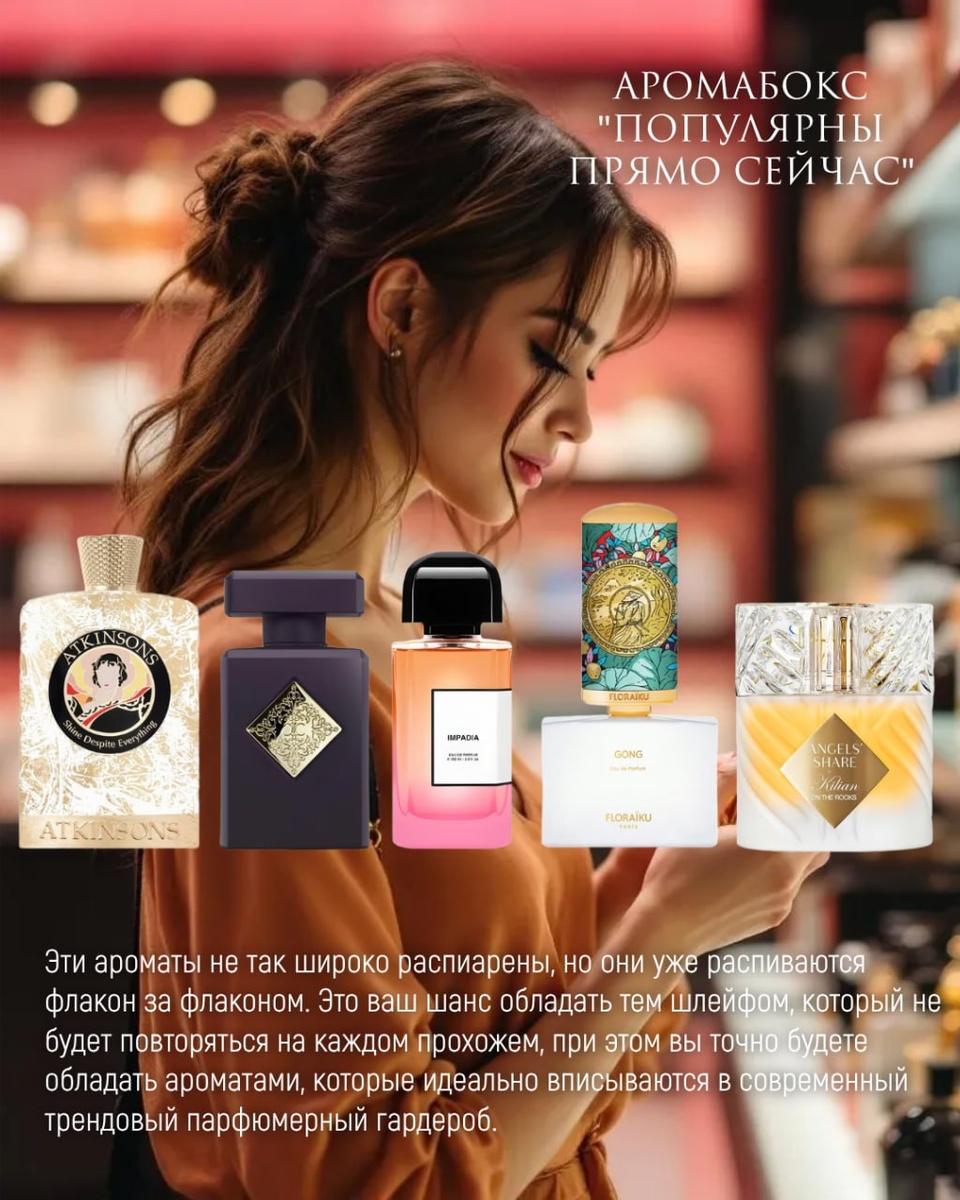 Аромабокс "Популярны прямо сейчас" Atkinsons Shine Despite Everything Initio Cant Get Enough Kilian Angels' Share on the Rocks Floraiku Gong Parfums BDK Impadia