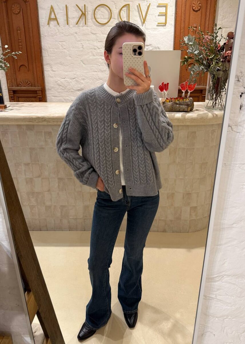 «Утро обещает быть добрым, если оно началось с примерки» — Саша, SMM-менеджер Евдокии Всем привет! Забежала в шоурум примерить несколько романтичных и элегантных образов на осень и приближающую зиму: 🤎кардиган в косичку, джинсы клёш и пиджак из экокожи; 🤎жакет от костюма и карамельные брюки; 🤎жёлтое поло, цветочная юбка и пиджак в цвете кемел; 🤎голубой кардиган и воздушная юбка. Забрать образы со скидками до -50% можно здесь 🎀