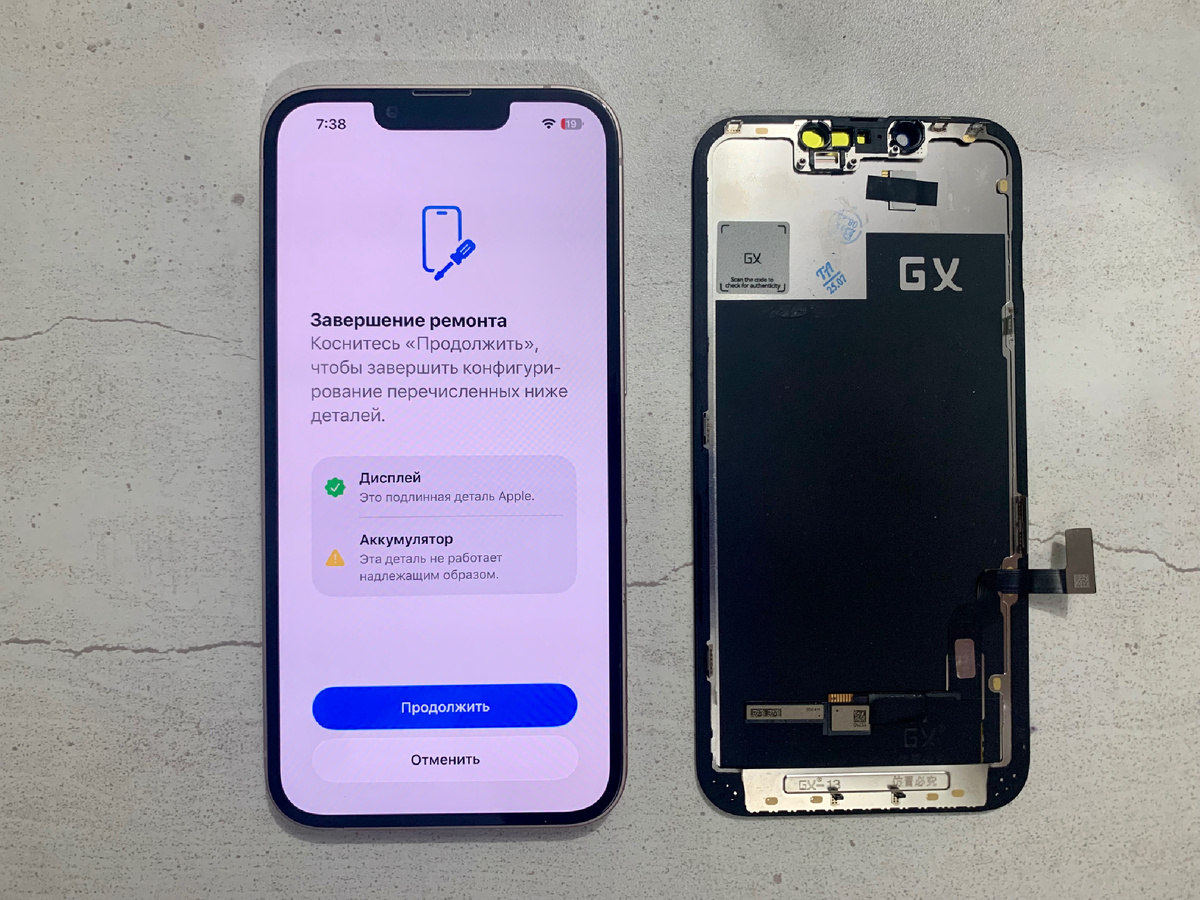 Ко мне в мастерскую Сервис36.рф в Воронеже попал iPhone 13, который включался, звонил, вибрировал, но экран был полностью черным. Владелец уже несколько раз менял дисплей на GX OLED и аналогичные модули, и каждый из них “умирал” после очередного падения. Как всё началось Я работаю независимым мастером по ремонту техники Apple, и истории про «идеальный бу с площадки объявлений» вижу регулярно. Здесь было так же: телефон купили с Авито, описание красивое, всё в стекле и чехле, «не ронял». Потом начались замены дисплеев на жесткие OLED, которые держались до первого несильного удара. Что я увидел на приёмке При приёмке iPhone 13 включался, реагировал на звонки и переключатель беззвучного режима, но экран не загорался. Снаружи корпус выглядел аккуратно, без свежих крупных вмятин. На самом дисплее стоял очередной GX OLED, визуально без «паутины» и сколов. Диагностика простым языком После разборки стало видно, что аппарат уже пересобирали. Неоригинальная задняя крышка, аккумулятор без пр