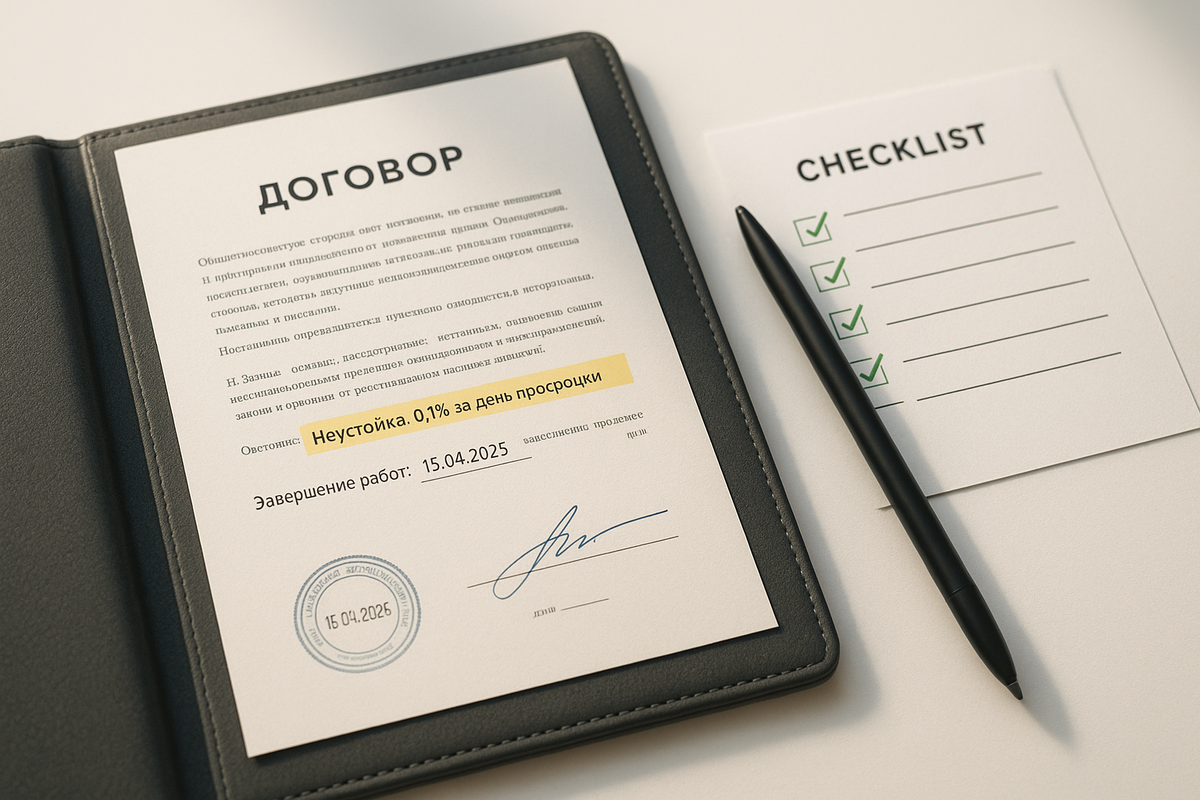 Что делать: Пропишите чёткую сумму: «За каждый день просрочки — 0,1% от стоимости работ».