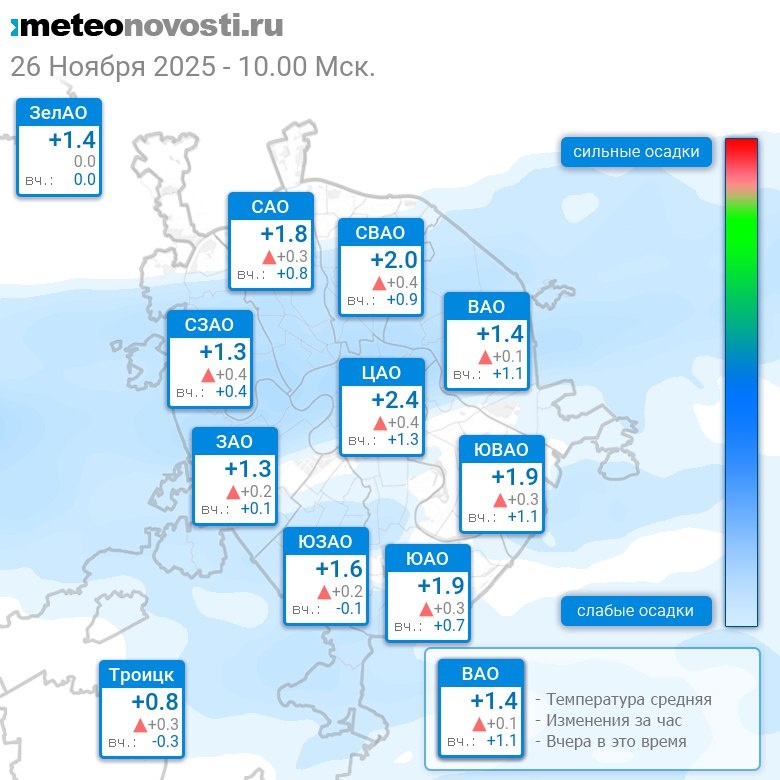 В 10:00 в Москве было от +0.3°C до +2.7°C, средняя температура +1.7°C #погода #Москва #осень #температура #26ноября #среда Перейти на сайт Прогноз погоды на 14 дней