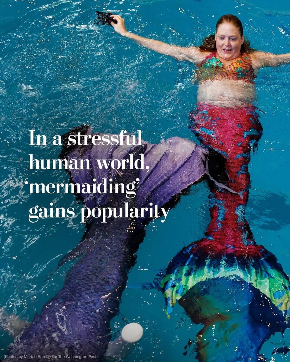 Бывают ли русалки профессиональными? ❤️ Mermaiding ("орусалочиванье") — это плавание с хвостом русалки, где главное не скорость, а артистизм, владение техникой плавания с моноластой и создание образа. 💦 Под водой нужно выполнять плавные движения и акробатические элементы, желательно с одним хвостом, который крепится к ногам. Иначе это уже не русалка. И хотя это свежее веяние в фитнес-клубах, первая "профессиональная" русалка появилась ещё в 1920-х - австралийская актриса и пловчиха Аннетт Келлерман. Современный мермейдинг уже (!) признан спортом с чемпионатами. Отличительная черта - сильный дельфиньий удар (вообще похоже на технику баттерфляй/дельфин, только с гламурным хвостом). Профессиональные русалки выступают в аквариумах, устраивают фотосессии и проводят детские праздники. ⬆️Нажмите на цитату, чтобы развернуть. 🧜♀️ Кстати, mermaiding помогает улучшить психическое здоровье: это своего рода медитация в движении. Ритмичные волнообразные движения и внимание к дыханию создают сос