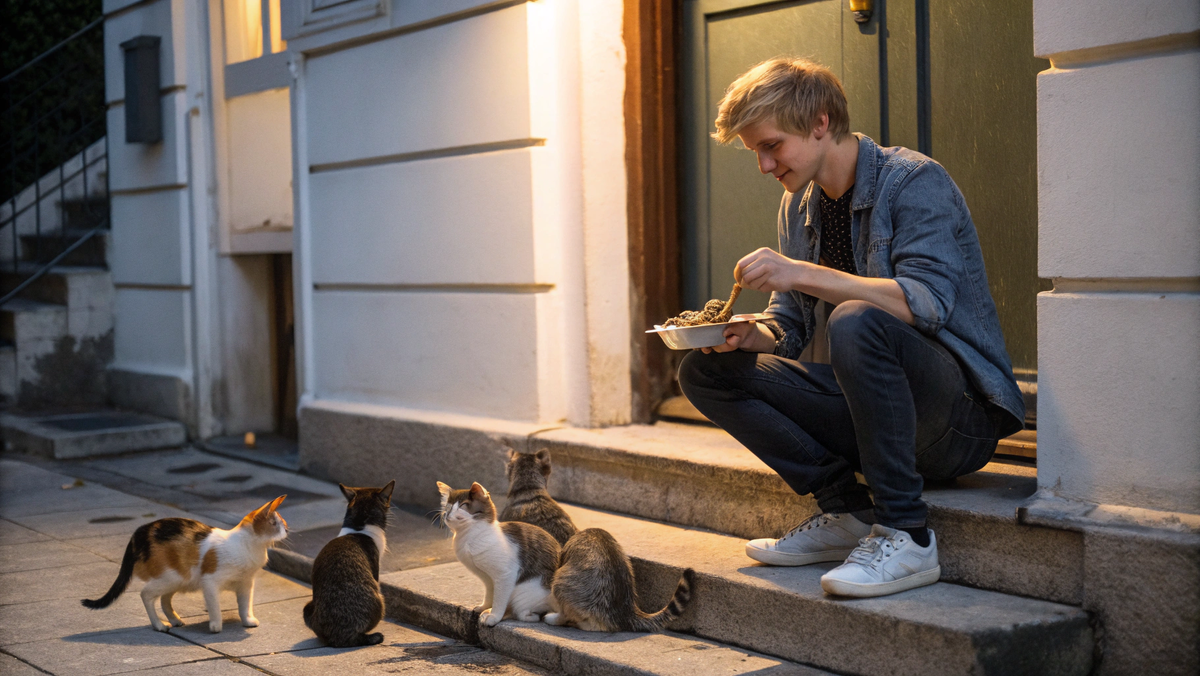 Коты терлись о его ноги, мурлыкали, выпрашивали завтрак. Они привыкли к этому долговязому студенту – знали, что добрее человека не найти. Андрей неспешно открыл пакеты, разложил корм по импровизированным мискам – старым крышкам от банок.