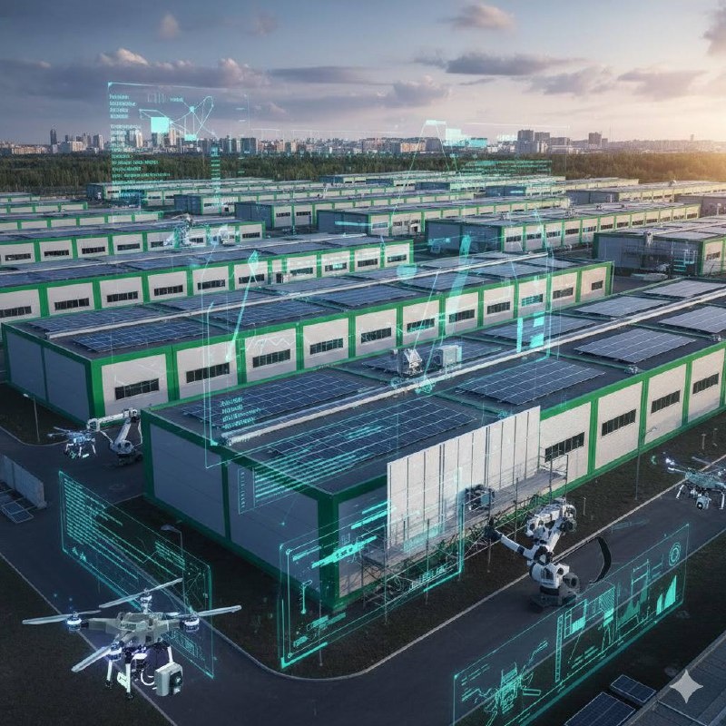 Ключевые технологические тренды в промышленном и складском строительстве (2025) 🖥 Самые важные и интересные события в секторе нежилой недвижимости связаны с цифровизацией, новыми материалами и государственной поддержкой. 1. Цифровизация и Интеллектуальные Системы 🌐 Активное внедрение высоких технологий является главным двигателем эффективности в строительстве складов и заводов. • BIM-технологии (Информационное Моделирование Зданий): BIM уже становится обязательным стандартом. Он позволяет создать единую цифровую модель будущего объекта, что критически важно для сложных инженерных систем промышленных зданий. Основной эффект — предотвращение ошибок и коллизий между коммуникациями, что сокращает сроки и бюджет на этапе монтажа. • Использование Искусственного Интеллекта (ИИ) и IoT: ИИ применяется для оптимизации внутренней логистики и планирования идеальной компоновки склада еще на этапе проектирования. IoT-датчики встраиваются в конструкции и оборудование, позволяя автоматически уп