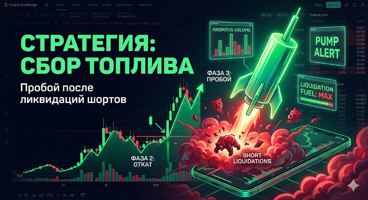 🧨 Стратегия «Сбор топлива» (Пробой после ликвидаций шортов)