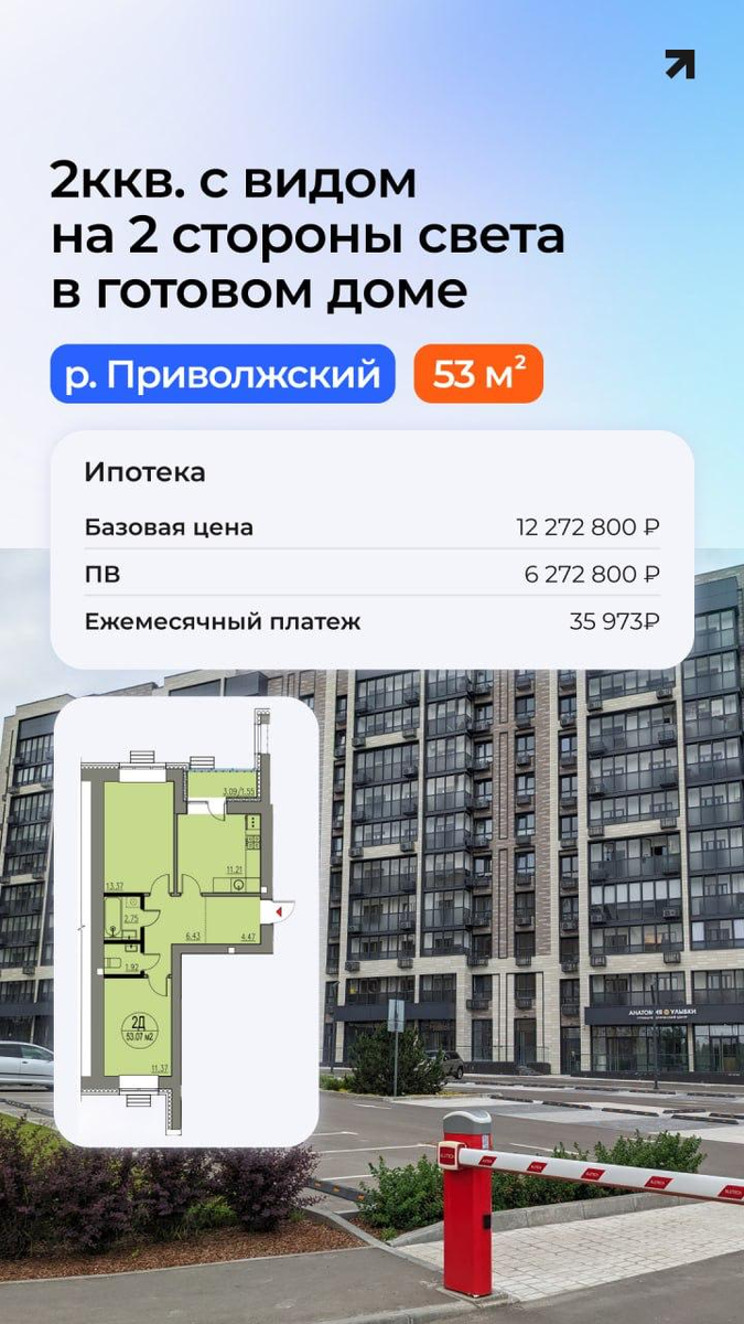 🔼 2-комнатная квартира площадью 53 м² с видом на две стороны света за 12 272 800 ₽ — Ключи выдаются в день покупки — 10-этажный кирпичный дом, расположенный в Приволжском районе — Во дворе имеется парк и просторная наземная парковка — Доступны договоры купли-продажи от застройщика, а также семейная и IT-ипотека под 6% 💬 По поводу консультации напишите мне @niyazrieltor 📱 Либо позвоните по номеру 89510686306