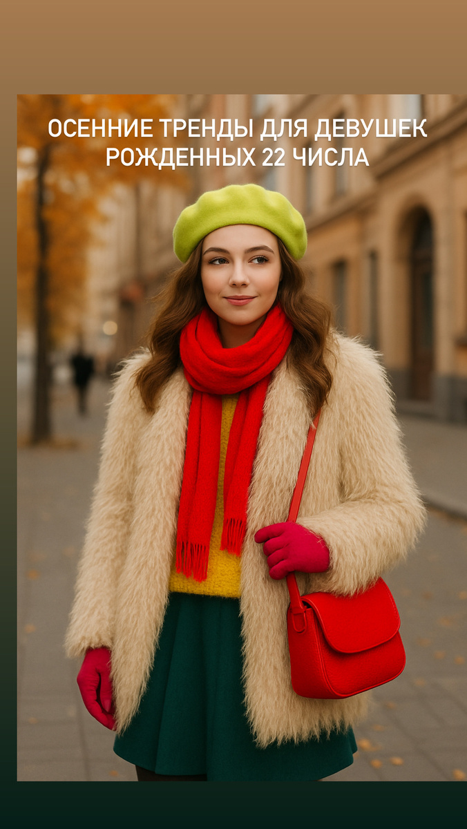 Девушки, рождённые 22-го числа, обладают особой вибрацией: это число мастерства, материализации идей и тонкого баланса между структурой и вдохновением. Когда к этой дате добавляется архетип Шут (Дитя–Творец), получается уникальная энергетика — лёгкая, игривая, яркая и в то же время глубокая. Осень для вас — это время экспериментов, обновления и смелого самовыражения. Ниже — тренды, которые не просто украсят гардероб, а подчеркнут вашу творческую натуру. Осень традиционно тяготеет к приглушённым цветам, но Шуту хочется цвета и жизни. Идеи для вас: Так вы сможете сохранить детскую живость, не разрушая осеннюю гармонию. Архетип Шут любит тактильность, движение и элементы «сюрприза». Что подойдёт: Такие фактуры подчёркивают вашу естественную легкость и творческую хаотичность. Для Шута одежда — способ делиться эмоциями. Осенние принты-тренды, идеально подходящие вам: Выберите принт, который отражает ваше настроение — он станет вашим внутренним талисманом. Дни осени — прекрасное время дл