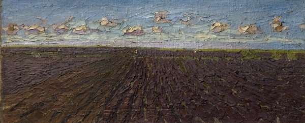 Ветер лепит образ врага. Гонит нечисть издалека. Небо над полем бывает грязным, Словно кто-то его измазал, Кто-то замусорил, замутил Так, что порой не видно пути. Не по себе бывает порой, Когда налетает нечисти рой. Даже от дел отвлекает слегка В грязном небе «баба-яга». Зря старается мелкий бес. Взял на мушку, и он исчез. Мелькнул и растаял образ врага. Что это было? Всего лишь пурга. Д. Д. Бурлюк «Поле» 1908 г. Государственный Русский Музей