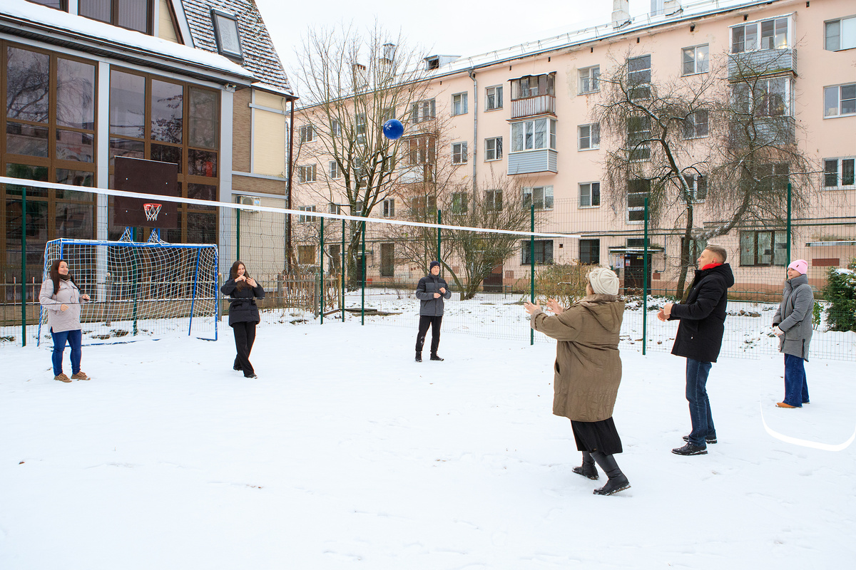 обживать площадку. Бадминтон или футбол у себя во дворе под снегопадом –