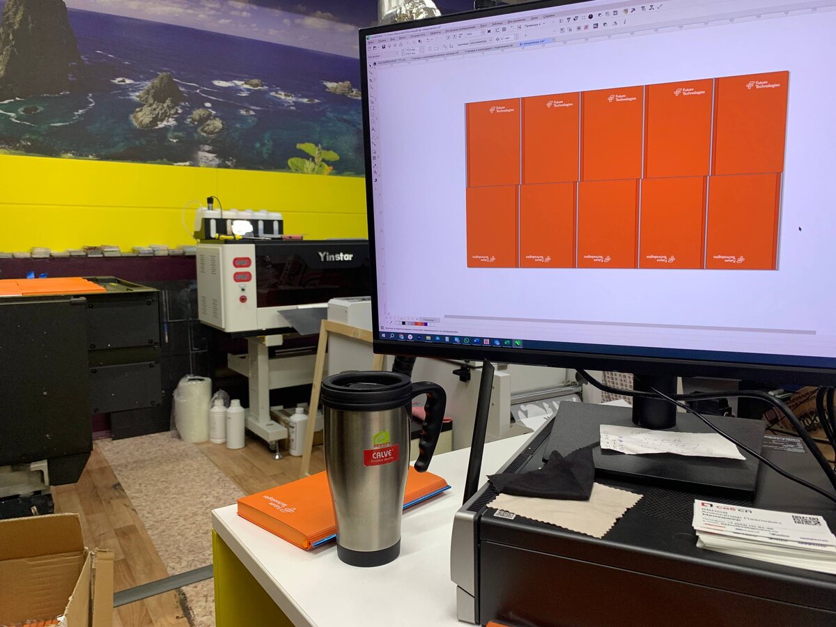 Вот так собственно появляются логотипы и надписи на ежедневниках. УФ печать всемогущая 🙂↕️