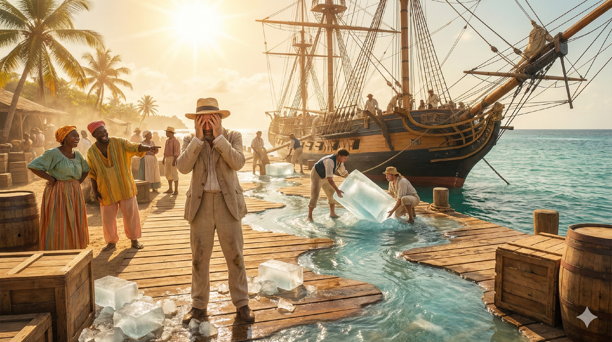 Когда мы жалуемся на сложности в работе, история Фредерика Тюдора должна работать как холодный душ. Буквально. Этот человек придумал «холодную цепь» поставок за 100 лет до появления рефрижераторов, используя только физику, опилки и слабоумие и отвагу. Представьте: на дворе 1806 год. Холодильников нет. В Бостоне зима, лед в озерах бесплатный. А на Карибах и в Индии богатые колонизаторы изнывают от жары и пьют теплый джин. Фредерик Тюдор решает: «Я отрежу кусок озера и отвезу его в тропики».