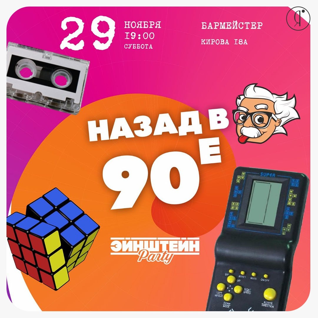 Эйнштейн-party «Назад в 90-е» #Вечером #Квизы Не обязательно ждать, пока изобретут машину времени, чтобы сгонять в 90-е Участникам предстоит окунуться в эту неоднозначную эпоху, вспомнить способы перемотки аудиокассет при помощи карандаша, вкус растворимых напитков INVITE и YUPI и ларьки на каждом углу 🪑Команда: от 2 до 8 человек 29 ноября | 19:00 Barmeister, Кирова, 18А 600 руб. с участника +7 964-418-09-83 Online Якутия | Ждем вас в МАХ