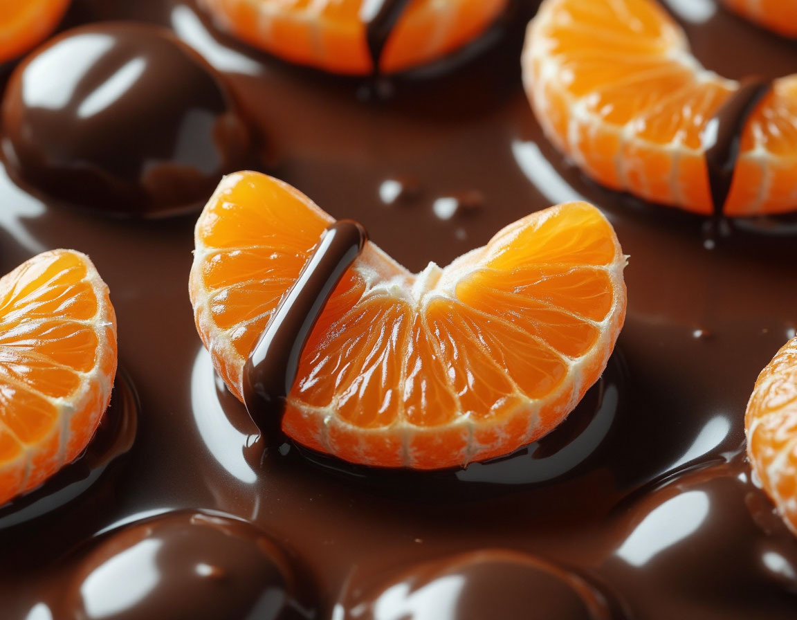 Простой и вкусный новогодний десерт: мандарины в шоколадной глазури Новый год — время волшебства, семейных традиций и, конечно, вкусных угощений. Если вы хотите удивить гостей простым, но эффектным десертом, попробуйте приготовить мандарины в шоколадной глазури. Это блюдо: готовится за 15 минут; требует минимум ингредиентов; выглядит празднично и аппетитно; нравится и детям, и взрослым. Ингредиенты (на 4–6 порций) мандарины — 8–10 шт.; тёмный шоколад — 150 г (можно заменить молочным или белым); сахарная пудра — для посыпки (по желанию). Пошаговый рецепт 1. Подготовка мандаринов. Тщательно вымойте мандарины и обсушите их бумажным полотенцем. Аккуратно разделите каждый мандарин на дольки, стараясь не повредить мякоть. Удалите косточки, если они есть. 2. Растапливание шоколада. Разломайте шоколад на мелкие кусочки. Растопите шоколад на водяной бане: поместите миску с шоколадом над кастрюлей с кипящей водой (дно миски не должно касаться воды). Постоян