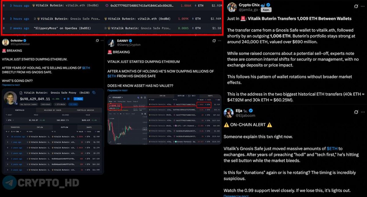 🤨 В Twitter началась паника из-за переводов Виталика Бутерина – некоторые считают, что он начал продавать #ETH на миллионы $$$ впервые за