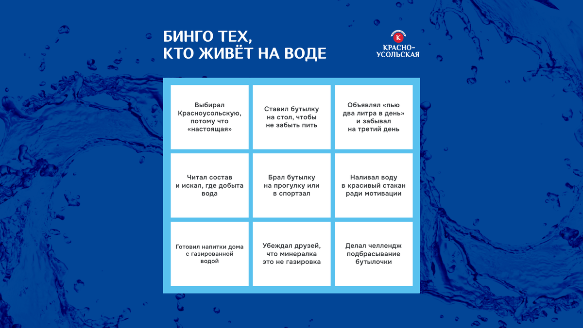 Проверка себя на водный режим. Бинго для тех, кто старается пить достаточно