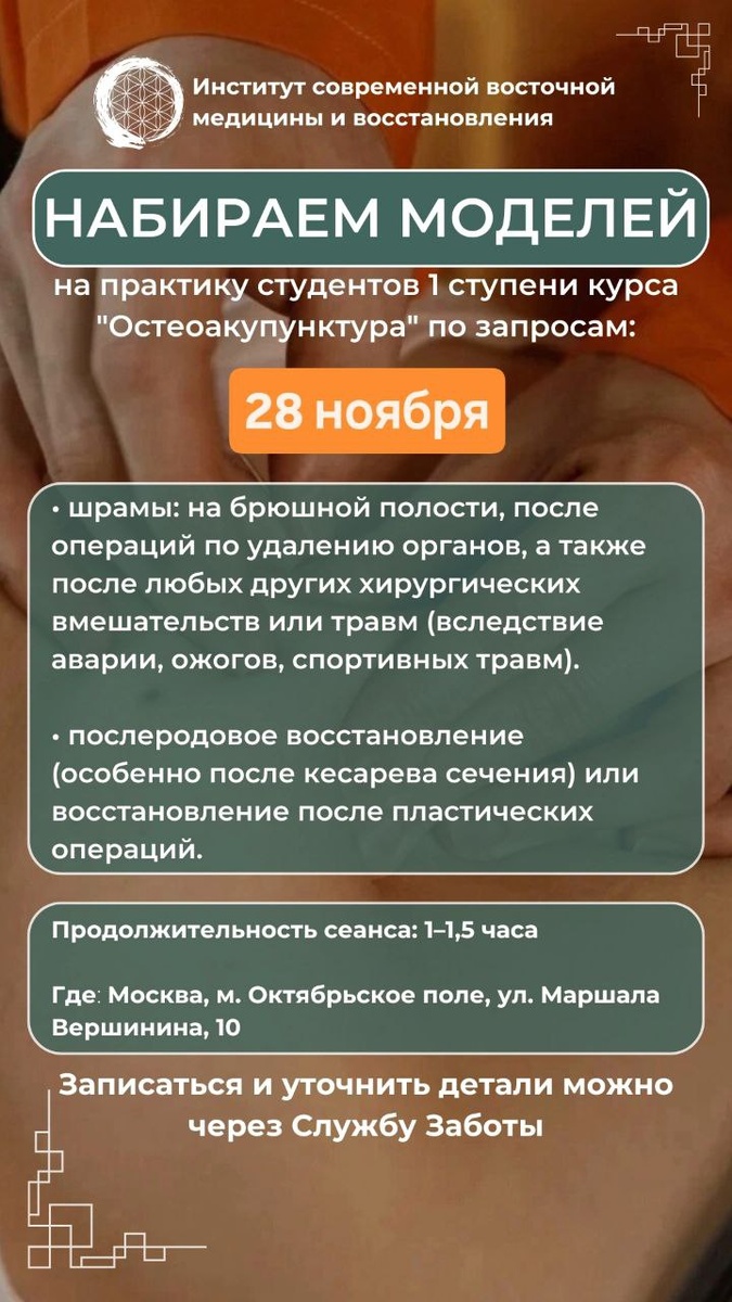 📣 Друзья, важная новость! Срочно набираем моделей! 28 и 29 ноября мы проводим практику для студентов, а это значит — у вас есть шанс попасть на сессию и получить работу с телом от будущих специалистов. Это возможность: — проработать свой запрос (запросы на картинке), — почувствовать эффект практик, — и поддержать наших студентов в обучении. Если сами не можете — отправьте этот пост друзьям или близким. Возможно, именно сейчас это то, что им нужно 🙏 Для записи пишите в Службу заботы.